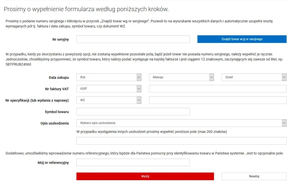 W związku z tym, prosimy o dokładne zapoznanie się z instrukcją obsługi zgłoszenia serwisowego.