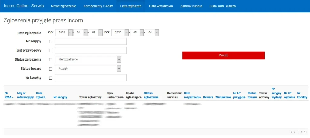 W przypadku nieposiadania jeszcze loginu i hasła, należy wysłać prośbę o nadanie loginu i hasła do modułu serwisowego na adres: serwis@incomgroup.pl.